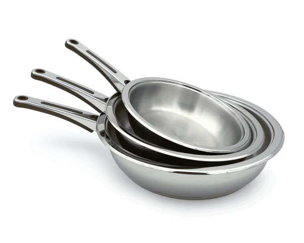 Lot de 3 Poêles Inox 18/10 - Compatible Induction - Sans PFAS
