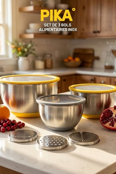 Set de 3 bols alimentaires inox + 3 rapes intégrées